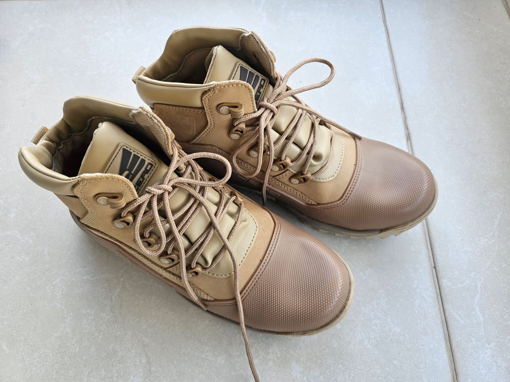 Estas botas têm qualidade e conforto excelentes. Entretanto, as que eu recebi, tem um aspecto muito diferente do apresentado no anúncio: a cor da parte de plástico é marrom claro, sendo muito diferente da cor areia da parte de couro, tipo sapato antigo de duas cores. Em resumo: recomendo só para os que procuram qualidade e durabilidade, sem se preocupar com a estética.