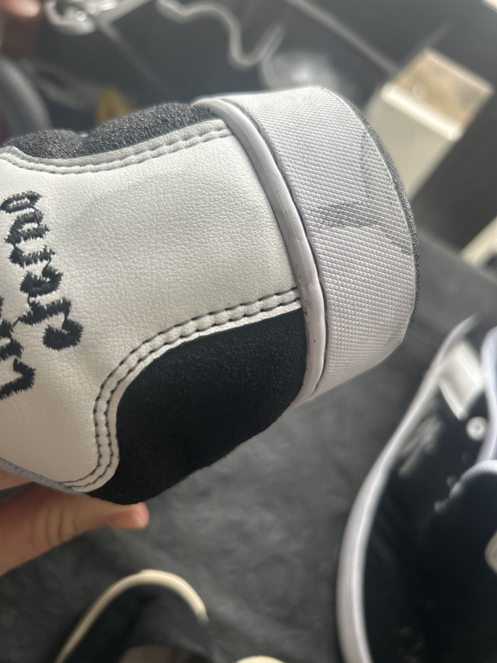 O tênis está desbotando teve contato uma vez com água , manchou cadarço e a parte branca