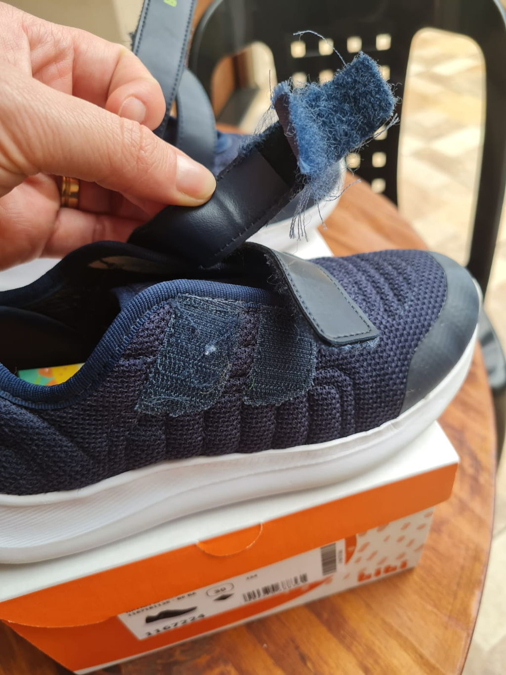 Retirei o produto em 8 de outubro e hoje, 2 de novembro, faz apenas 25 dias. O velcro das tiras reguláveis já está soltando e descosturando. Meu filho usou o tênis cerca de 12 vezes para ir à escola (5h de uso diário). Sempre comprei Bibi, principalmente os modelos Slip On, por serem confortáveis e práticos para calçar. Porém, foi a primeira vez que escolhi um modelo com velcro e me arrependi. A costura e o material são frágeis e de qualidade péssima, mesmo sendo "indicado para o dia a dia" no site. Não recomendo! A durabilidade é muito baixa para o valor e a reputação da marca.